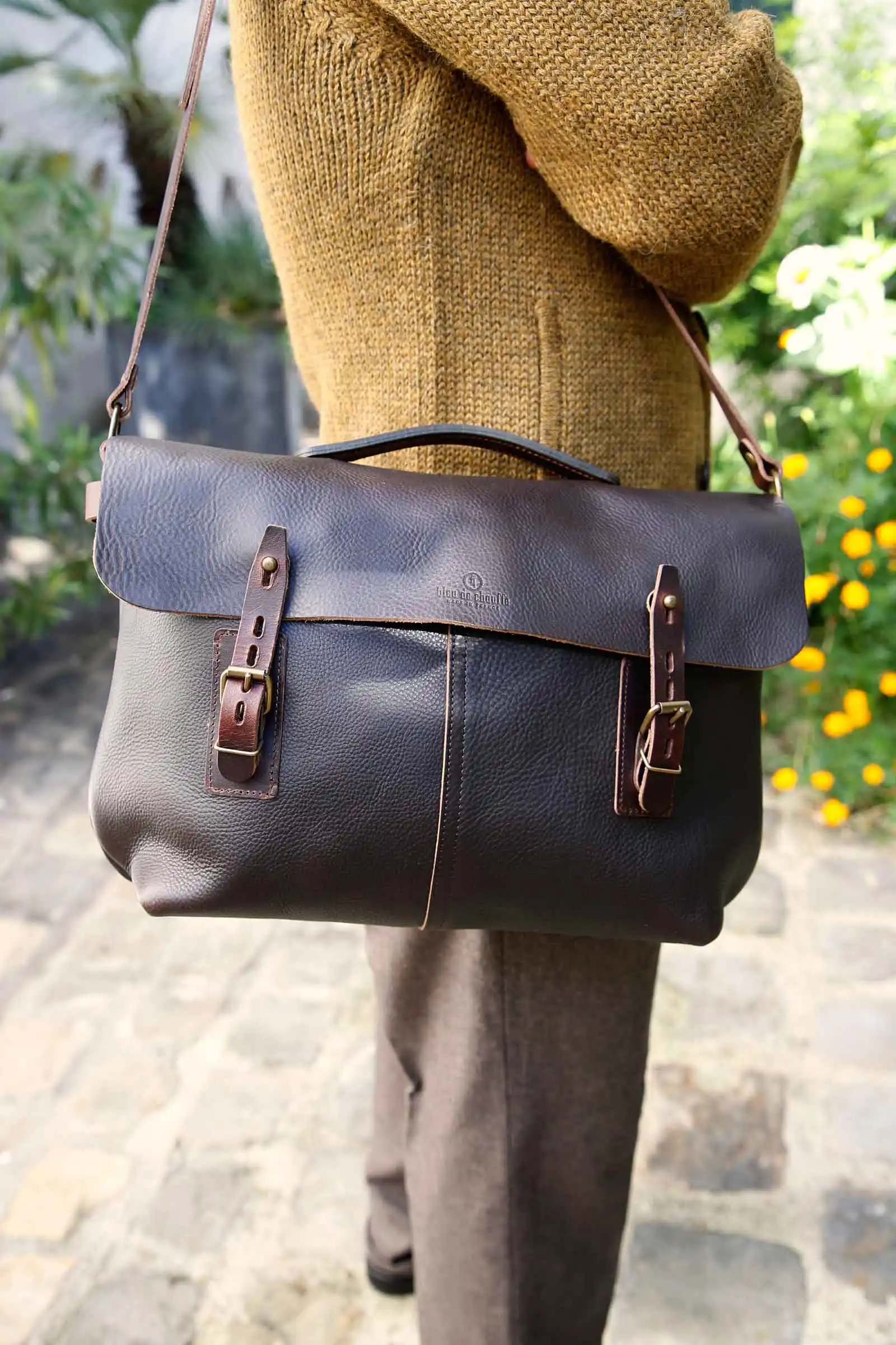 Un des grands classiques de la maison bleu de chauffe, le sac Lucien est directement inspirer des besaces de plombier.