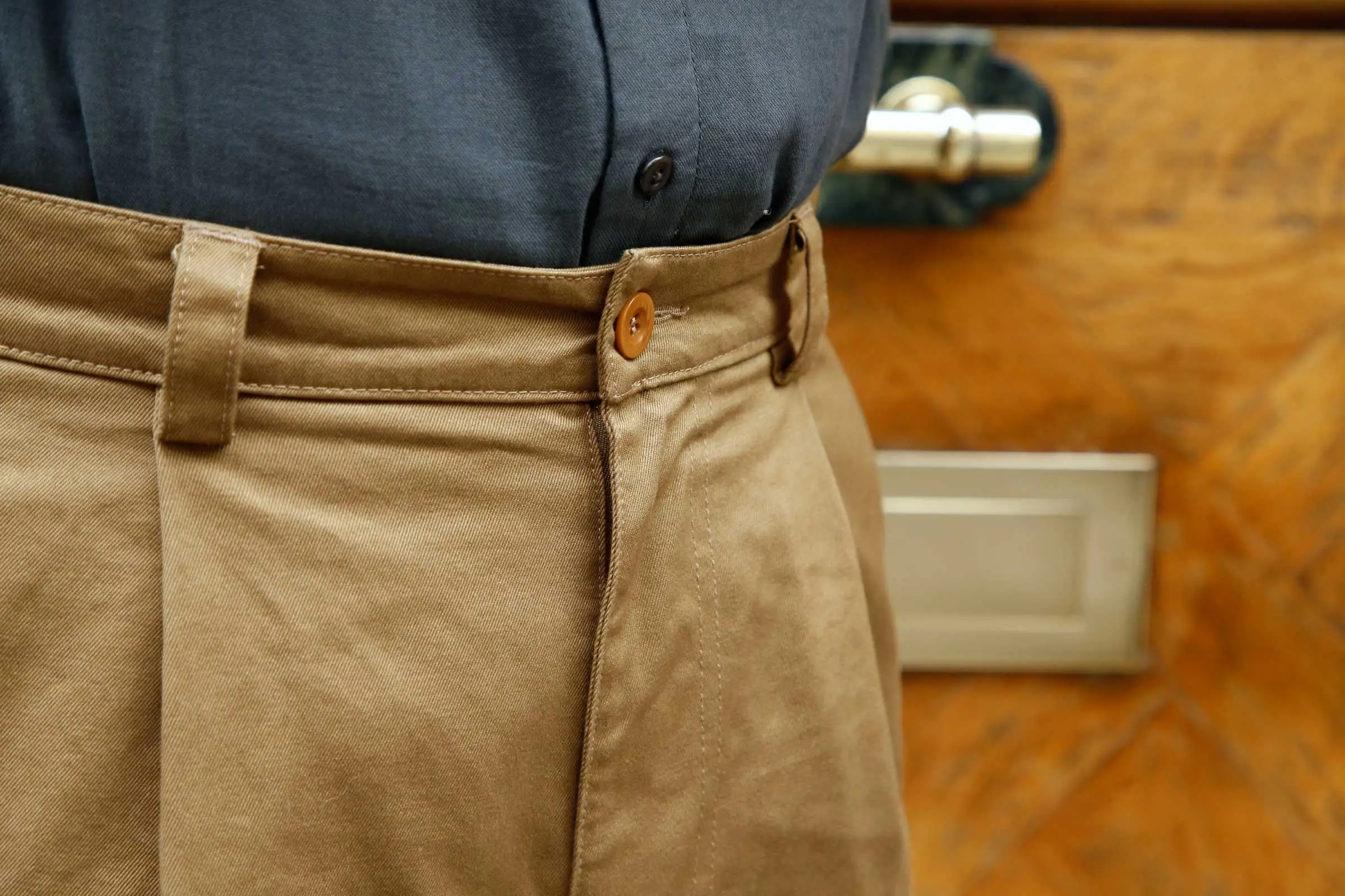 Fini les coupes slim avec de l’élasthanne, on revient aux fondamentaux : 1 pli, coton twill, taille haute. Simple, efficace et élégant, c’est le type de pantalon que nous devrions tous avoir dans notre armoire.